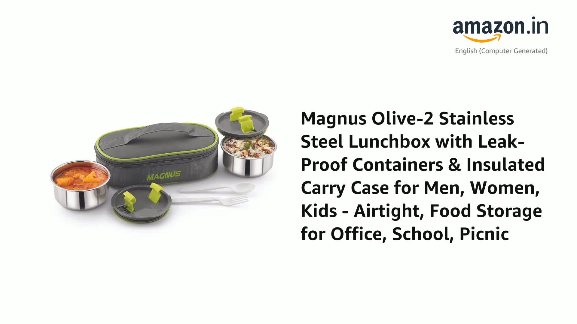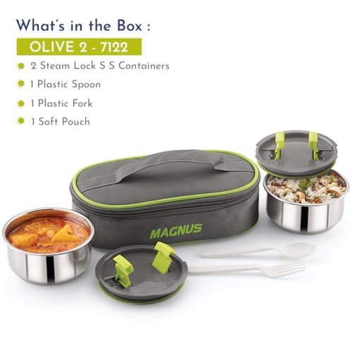 Magnus Olive-2 Stainless Steel Lunch Box for Kids, Lunch Boxes for Office Men - Leak-Proof Containers, Insulated Carry Case, Airtight Food Storage for School, Office, Picnic