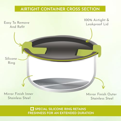 Magnus Olive-2 Stainless Steel Lunch Box for Kids Lunch Boxes for Office Men - Leak-Proof Containers Insulated Carry Case Airtight Food Storage for School Office Picnic