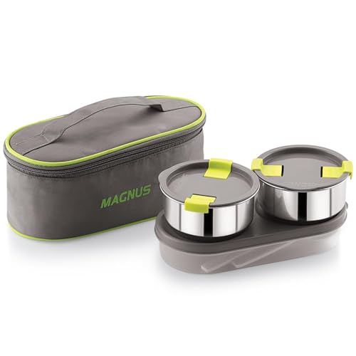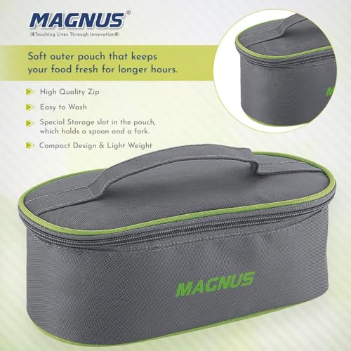 Magnus Olive 3 Lunch Box Set: Leak-Proof Stainless Steel Containers with Thermal Bag - Lunch Box for Kids and Lunch Boxes for Office Men - Airtight & Insulated Food Tiffin (950 ml)