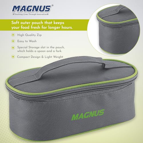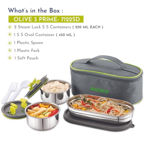 Premium Quality & Design: Magnus Olive 3 Prime a "Made in India" lunch box is crafted with stainless steel containers and a steam lock lid ensuring food freshness for extended hours. Perfect for school office or picnics this tiffin set boasts of durabilit