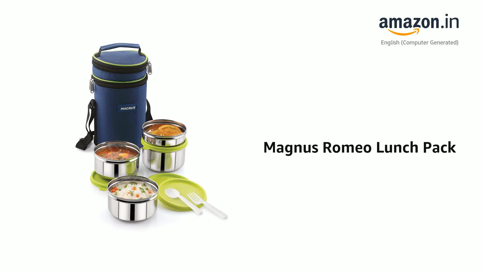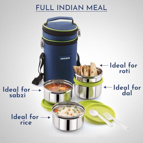 Magnus Romeo Stainless Steel Lunch Box Set with 4 Leakproof Containers & Insulated Bag – Airtight Tiffin for Office School Kids Men Women – Rust-Resistant Lunch Box for Kids & Office Men – Green