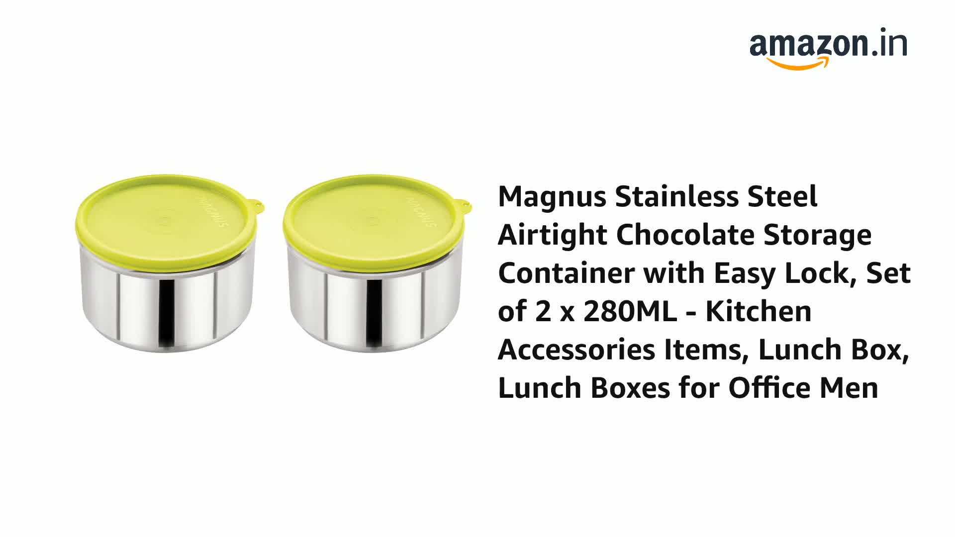 Magnus Stainless Steel Airtight Chocolate Storage Container with Easy Lock, Set of 2 x 280ML - Kitchen Accessories Items, Lunch Box, Lunch Boxes for Office Men