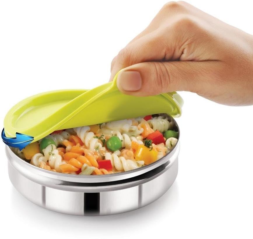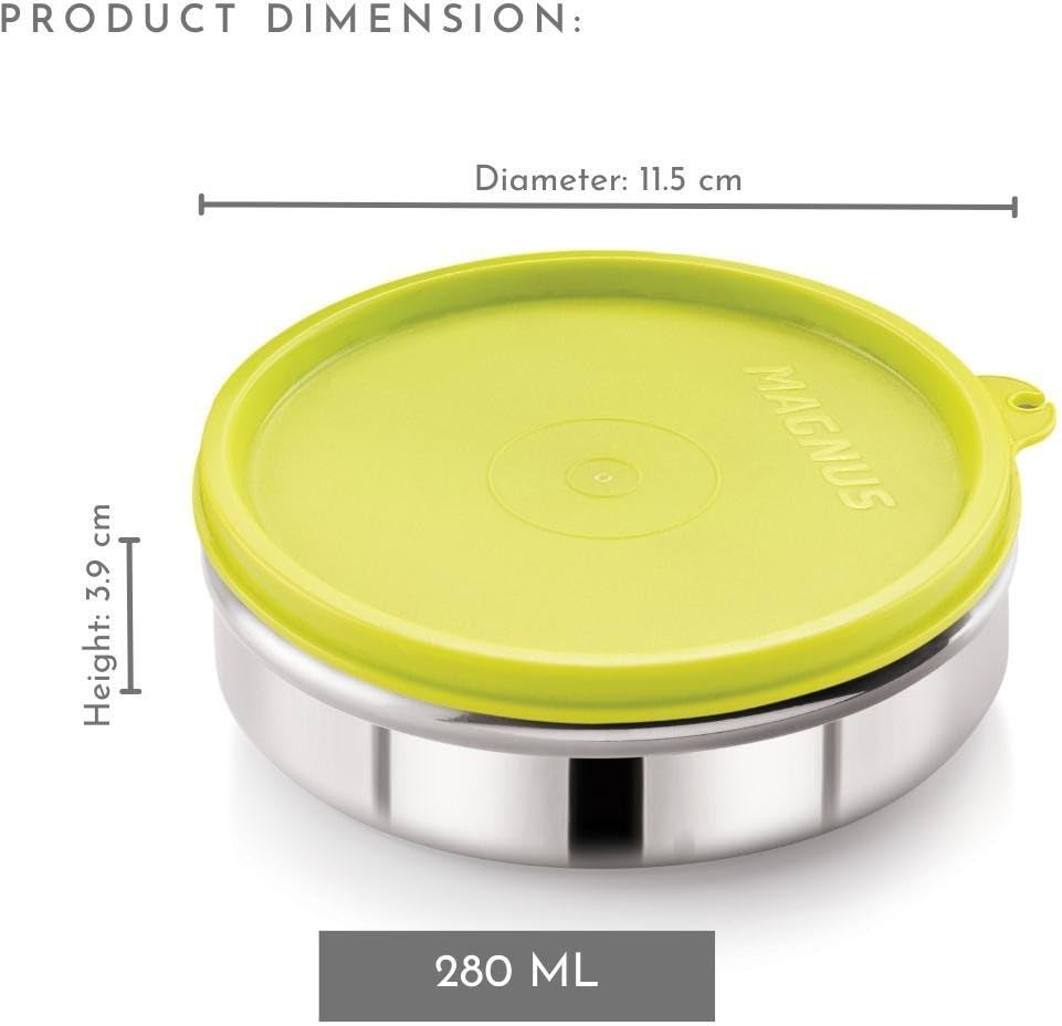 • Magnus Stainless Steel Build: Crafted from premium Magnus stainless steel this 520ML airtight leakproof lunch box for kids ensures durability and longevity making it perfect for daily use in school or office. This kitchen containers set is a reliable choi