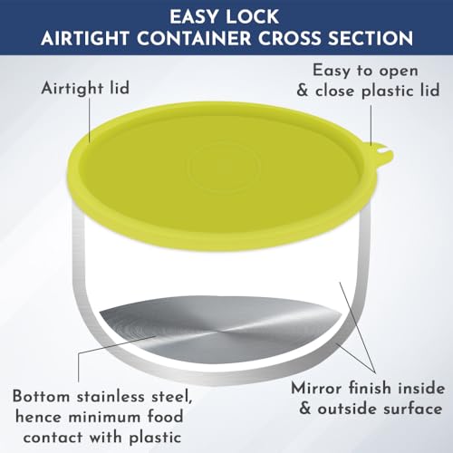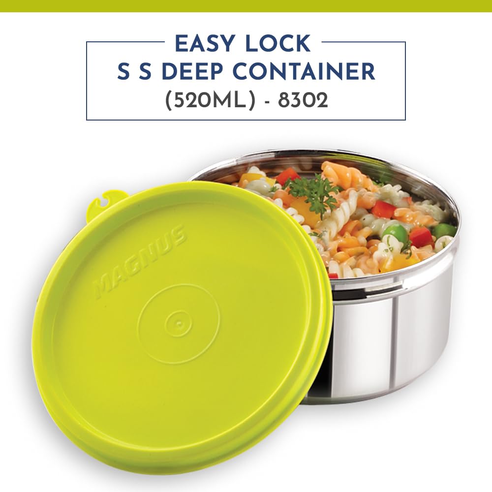 Magnus Stainless Steel Airtight Leakproof Deep Storage Container with Easy Lock, 520ML - Kitchen Accessories Items, Lunch Box, Lunch Boxes for Office Men