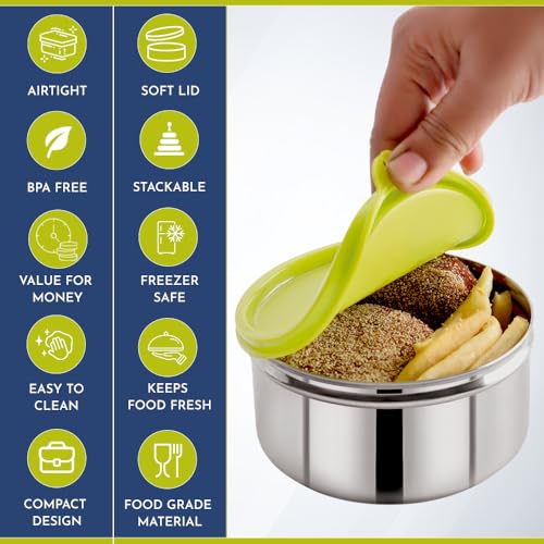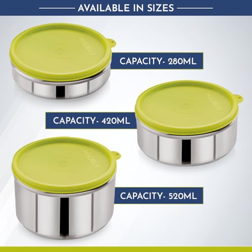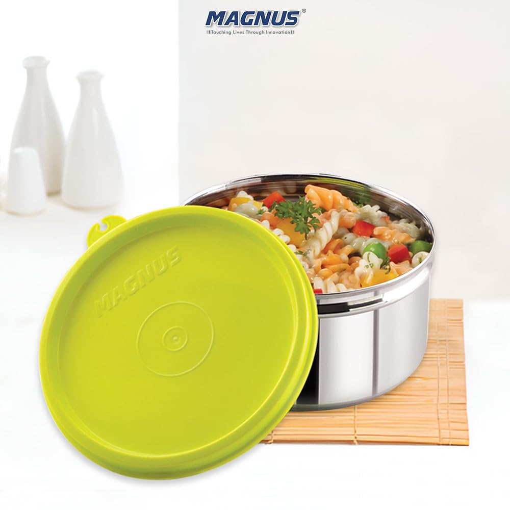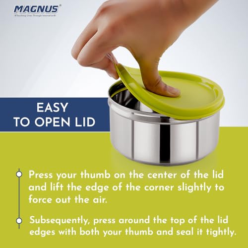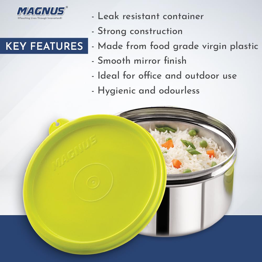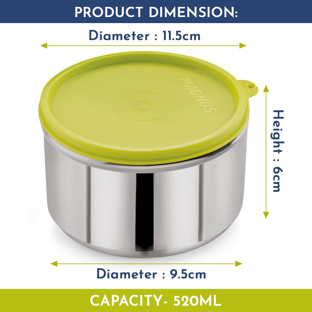 Magnus Stainless Steel Build: Crafted from premium Magnus stainless steel this 520ML airtight leakproof lunch box for kids ensures durability and longevity making it perfect for daily use in school or office. This kitchen containers set is a reliable choi