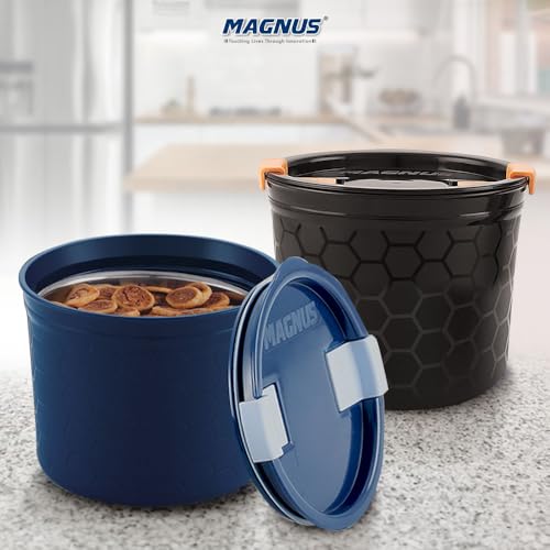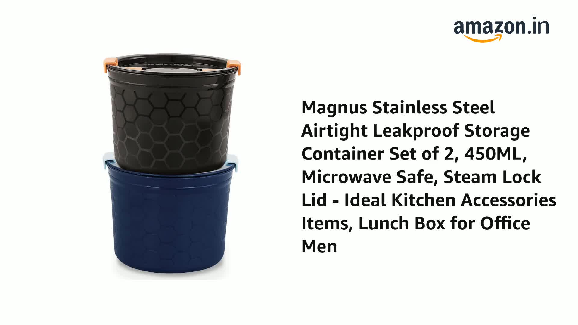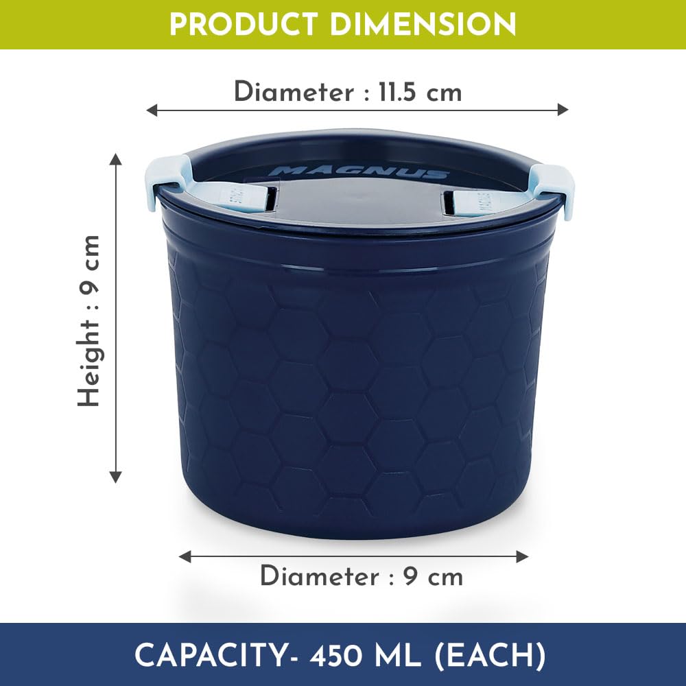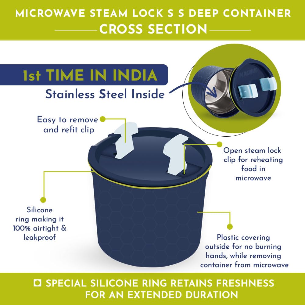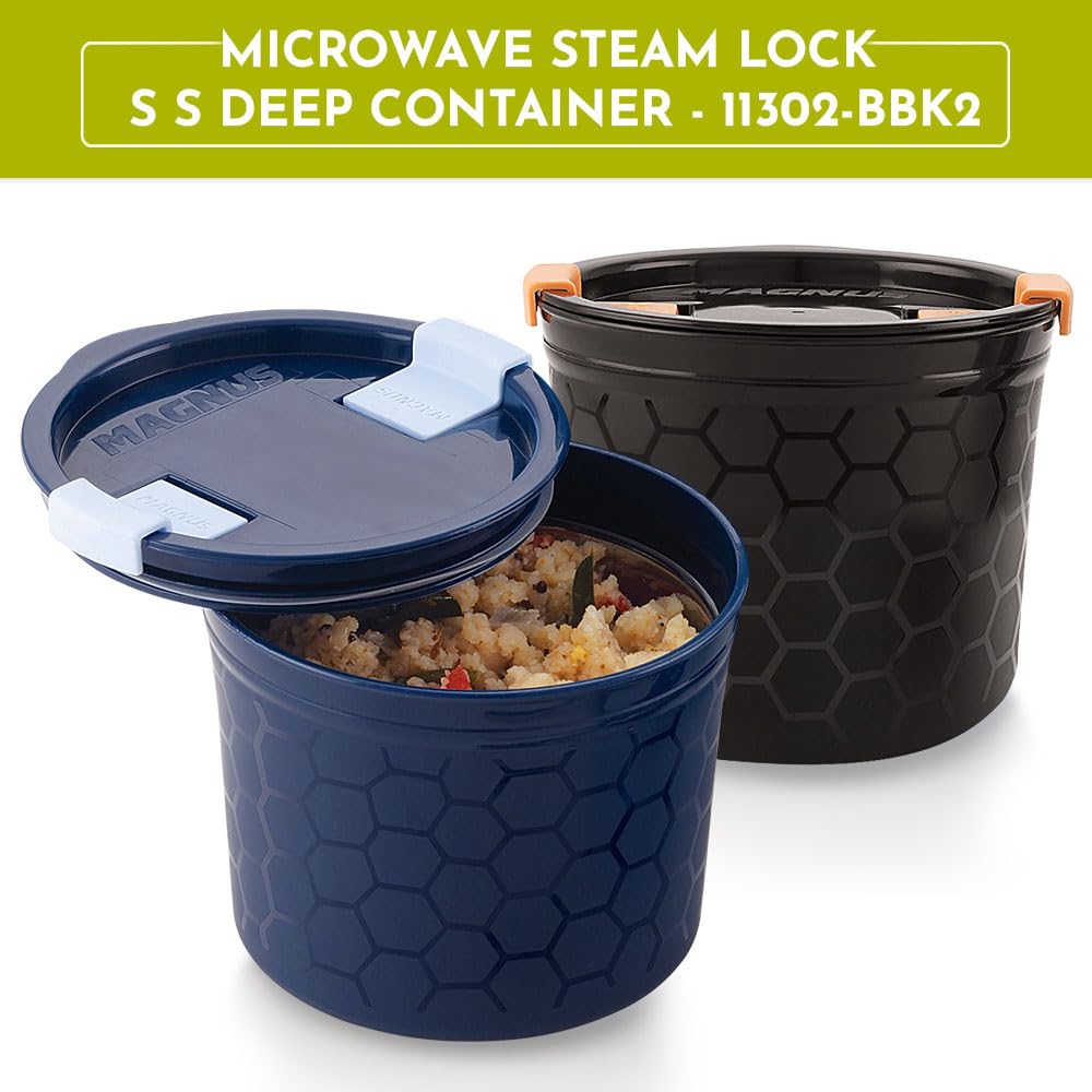 Magnus Stainless Steel Airtight Leakproof Storage Container Set of 2, 450ML, Microwave Safe, Steam Lock Lid - Ideal Kitchen Accessories Items, Lunch Box for Office Men
