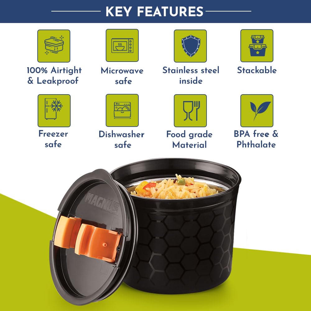 Microwave Safe Convenience: Designed for modern kitchens these microwave safe containers allow effortless reheating of meals making them ideal as tiffin box for office for men ensuring warm lunches.