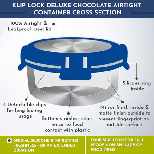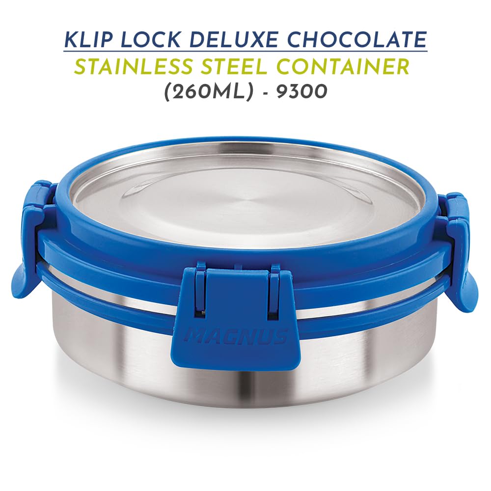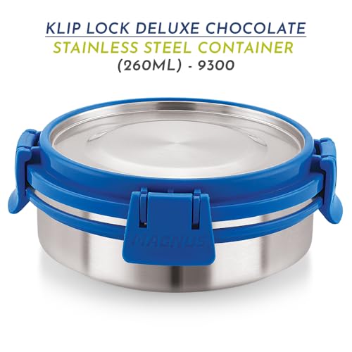 Magnus Stainless Steel Airtight Leakproof Storage Deluxe Chocolate Container 260ML with Klip Lock - Ideal Kitchen Accessories Items, Perfect Lunch Box, Lunch Boxes for Office Men