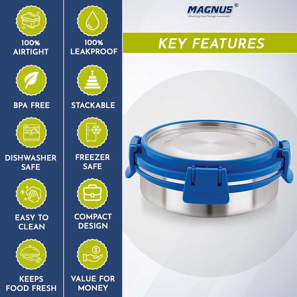 • Versatile Usage: This Magnus container is suitable for various purposes including a lunch box for office tiffin box for office for women and food storage containers. Its airtight seal makes it perfect for storing snacks dry fruits and more.