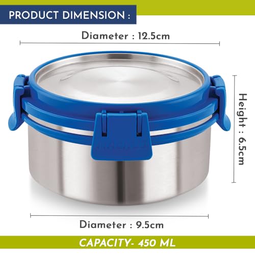 Compact and Convenient Size: With a capacity of 450ML this container is easy to carry and store. Ideal for a steel lunch box for kids lunch box for school and steel containers for kitchen it fits perfectly into bags and lunch boxes making it a versatile k