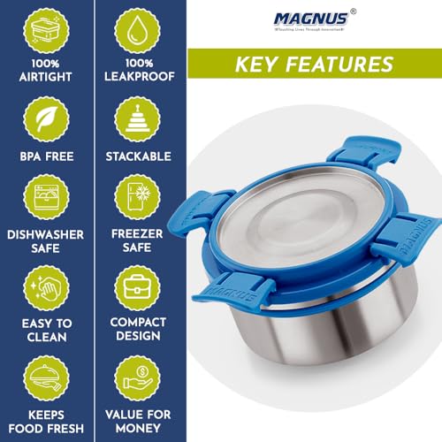 Versatile Usage: This Magnus container is suitable for various purposes including a lunch box for office tiffin box for office for women and food storage containers. Its airtight seal makes it perfect for storing snacks dry fruits and more.