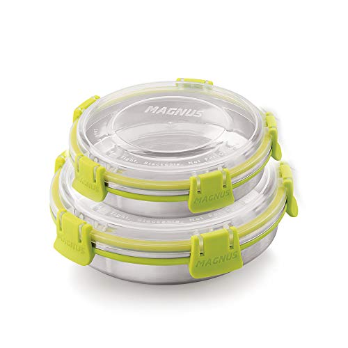 Magnus Stainless Steel Food Storage Containers with Leak Proof Lids - Set of 2 - Metal Lunch Box for, Snacks, Lunch and Sides - BPA Free, Freezer Safe, Dishwasher Safe. 100% Air Tight
