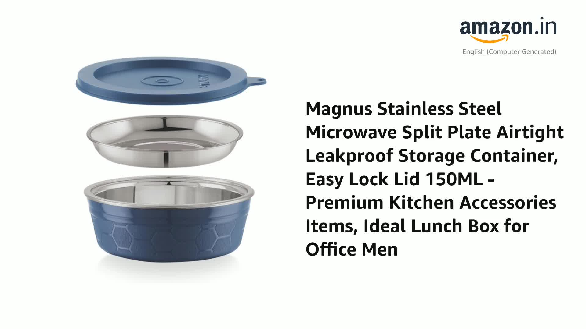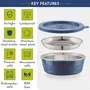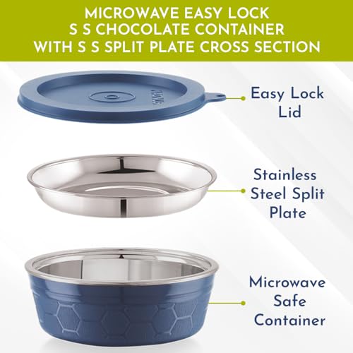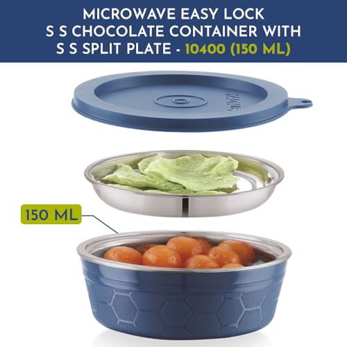 Magnus Stainless Steel Microwave Split Plate Airtight Leakproof Storage Container, Easy Lock Lid 150ML - Premium Kitchen Accessories Items, Ideal Lunch Box for Office Men
