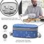 Corporate lunch from milton soft line range is an insulated lunch box by means of a softer outer jacket that will keep your food hot. It has 2 round stainless steel containers which is 100 percent leak - proof. It comes with an additional oval steel container which is ideal for keeping rice and rotis. Stainless steel fork and spoon is also provided which has a special storage slot in the jacket. This is ideal for office schools and colleges.