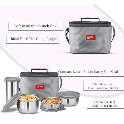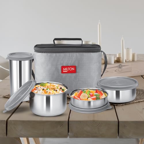 Introducing the all-new Steel Soft line Tiffin series from Milton. Delicious Combo comes with 3 stainless steel round containers and a stainless-steel tumbler. The outer jacket is trendy and is made of fine quality fabric for high grade insulation that keeps meals hot fresh and tasty for long hours.