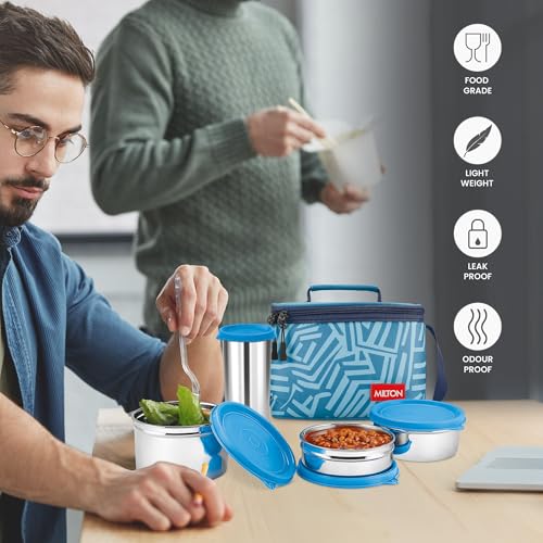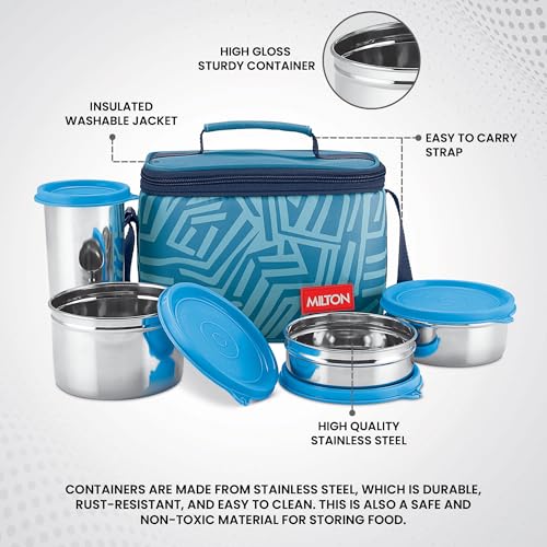 Introducing Steel Softline Tiffin series from the house of Milton. Delicious Combo is an ideal choice to carry home-made food in 100% leak-proof stainless steel containers. It comes with 3 stainless steel round containers along with a stainless steel tumbler. The outer jacket is made of finer quality and trendy fabric and high grade insulation that keeps contents hot and fresh for long hours. The stylish design and select colours of jackets make it a perfect meal companion.