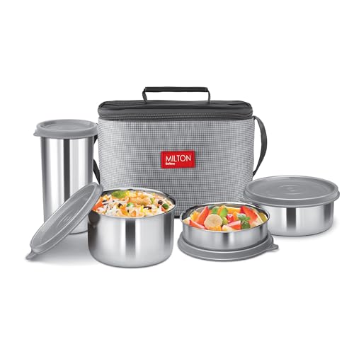 Introducing Steel Softline Tiffin series from the house of Milton. Delicious Combo is an ideal choice to carry home-made food in 100% leak-proof stainless steel containers. It comes with 3 stainless steel round containers along with a stainless steel tumbler. The outer jacket is made of finer quality and trendy fabric and high grade insulation that keeps contents hot and fresh for long hours. The stylish design and select colours of jackets make it a perfect meal companion.