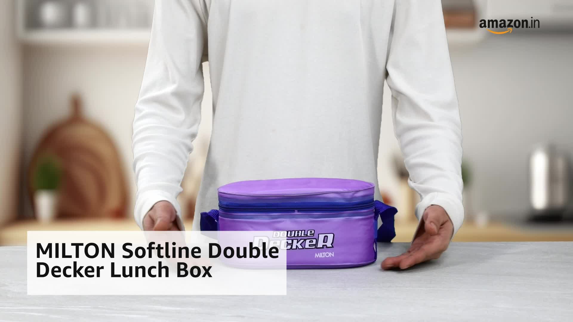 • Color: Purple; Material: Plastic. Package Contents: 1 - Piece Double Decker Lunch Box (2 Pc Round container - 280 ml each 1 Pc Oval container - 420 ml 1 Pc Plastic spoon1 Pc Fork)