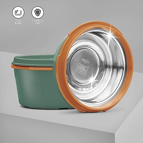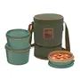 Milton Flexi 2+1 Inner Stainless Steel Lunch Box, Set of 3, (180 ml, 320 ml 450 ml), With Jacket, Green | Leak Proof | Microwaveable Steel | Food Grade