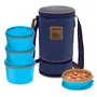 Colour: Blue; Material: Inner Stainless Steel; Package Content: 1 - Piece Flexi Tiffin Set (4 Container); Dimension in cm: (14.5 x 14.5 x 27)