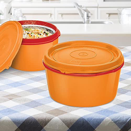 Milton Microwow Inner Stainless Steel Lunch Container, Set of 3, 350 ml Each, Red, Blue, Orange | 100% Leak Proof | Microwave Safe | BPA Free | Dishwasher Safe | Easy to Carry | Air Tight