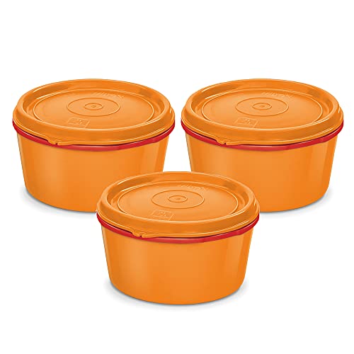 Milton Microwow Inner Stainless Steel Lunch Container, Set of 3, 350 ml Each, Orange | 100% Leak Proof | Microwave Safe | BPA Free | Dishwasher Safe | Easy to Carry | Air Tight