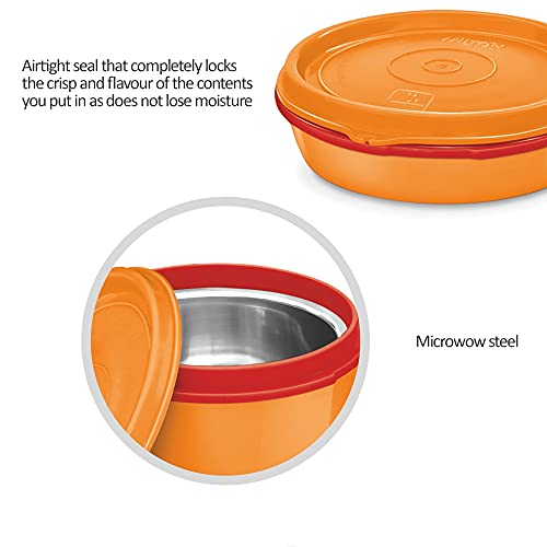 Milton is driven by a keen desire to delight its customers by offering them intelligent products. Milton brings on nostalgia about school-day tiffin meals reminds you of daily office-squabbles for hot food from your colleagues lunch boxes memories of so many houseware products that brought convenience to life then you already know who we are and what we do. Milton is one of the leading manufacturers and marketers of houseware products in the country. Quality is the bedrock upon which our reputation rests; we rigorously lab-test our products. Milton have introduced other brands which are Treo Claro and Spot zero. Carry an assortment of home-cooked meals without spillage with this Microwow steel container out of the frame to allow easy opening of the containers. While home-cooked meals grow cold and lose their taste by lunchtime this steel container and airtight lid help to effectively seal in the heat. The container let you carry item of your choice and prevent it from leakage. The inner side of these lunch boxes is made of food grade stainless steel material. The steel helps in retaining the heat of the food. It also retains the taste and nutritive value of the contents for a longer duration. It is durable and food-safe. Instructions for Microwave use: Microwow Steel Containers is meant only for reheating purpose in microwave mode without Lid. Ideal reheating time in microwave is 2 minutes. If the desire temperature isnt achieved it is advisable to reheat after interval of 10 seconds. Ensure that tiffin is placed without lid properly on glass turntable. NOT advisable for grill convention & combination mode. Not advisable to use foil to wrap inside the tiffin. Instructions for Dishwasher use: Wash tiffin in normal wash cycle. Do not wash tiffin in intense dishwashing cycle. Do not use lemon-scented detergent which will reduce the tiffin surface shining. Use sponge instead of brush to clean the outer body.
