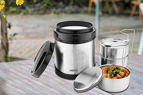 MILTON Royal 3 Stainless Steel Containers with 600 ml Each, PU Insulated, Hot & Cold Leak Proof Lunch Box for Office, College, Picnic, Silver