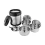 Materia type: Stainless Steel; No. of containers: 3; Capacity of containers: 3 Containers: 600ml Each; Contents include: 3 Containers (600 Ml Each) + 1 Carrier; Colour: Silver