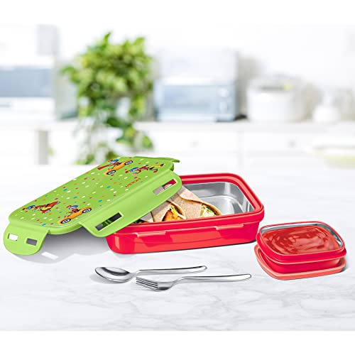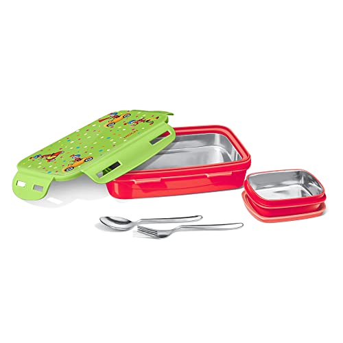 Pattern:Tiffin BoxThis insulated tiffin comes with a high quality of an inner stainless steel with an additional of leak-proof inner container it has steel spoon and fork too. The inner container is 100 percent leak-proof which makes it easy for your child to carry at school picnics.