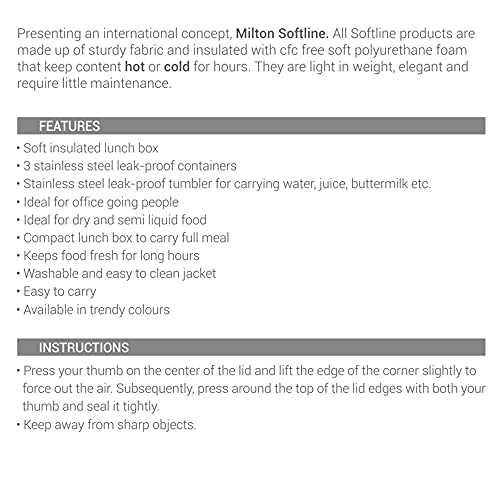 Ideal Lunch Carrying Solution for Everyday Use. Carrying your own home-cooked food to office is both a delicious way of consuming your daily meals. The Milton tiffin box is a great solution for carrying these meals in a stylish package. This set helps keep your meals warm when you are on the go. Ideal for office going people.