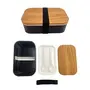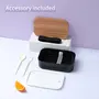 MINISO Lunch Box Plastic Divided Wood Grain Design Lid Bento Box with Cutlery Lunch Box for Office Women Lunch Box for Kids 900ml (Black)