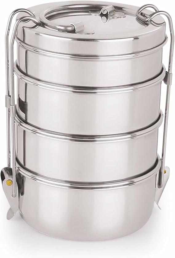Neelam Stainless Steel Four Compartment Tiffin Box with Lid, Silver- 2100 ml