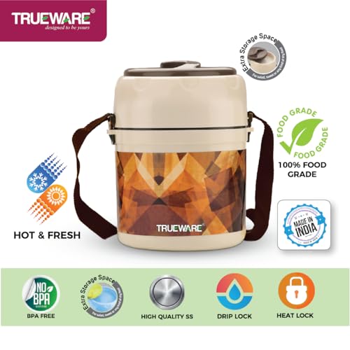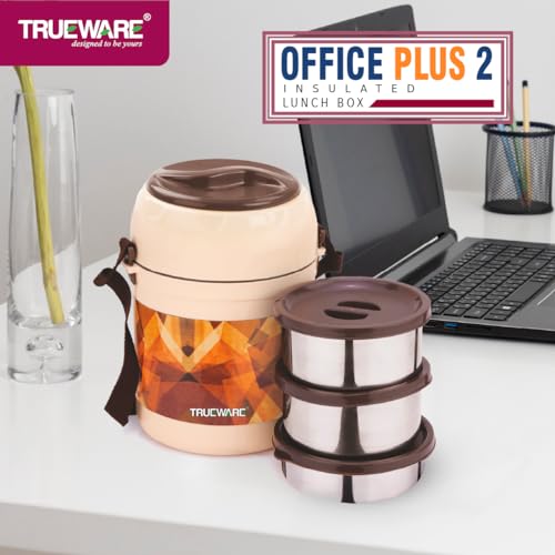 Truware office Plus 2 insulated Tiffin Lunch Box set is an ideal choice for carrying your meals to work and keeping them hot for a long time. While most home- cooked meals grow cold and lose their taste by lunchtime the double-walled insulation system of this set in the heat. The included containers let you carry multiple items of your choice and prevent them from leakage. The secure handle aids in portability and makes it easy for you to carry this lunch box anywhere.