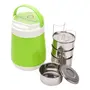 Oliveware Jumbo Lunch Box 4 Stainless Steel Containers with 350ml Insulated Body Leak Proof Full Meal & Easy to Carry - Green