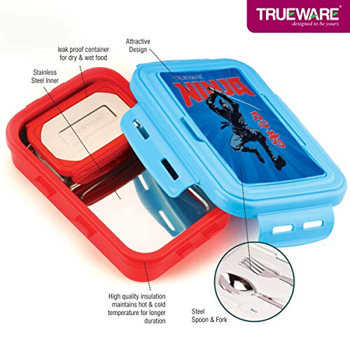 Trueware Senior POKO lunch box is made up with inside High Grade Stainless Steel and outside virgin food grade plastic (BPA Free & FDA Approved). High quality insulation maintains hot & fresh temperature for longer duration. Veggie container comes with superior quality of stainless steel inside & outside. It has silicon ring to make the container leak proof for dry & semi Wet food. Four side locking mechanism for outer body makes it very sturdy. This lunch box comes with cutlery set (SS Spoon & Fork)