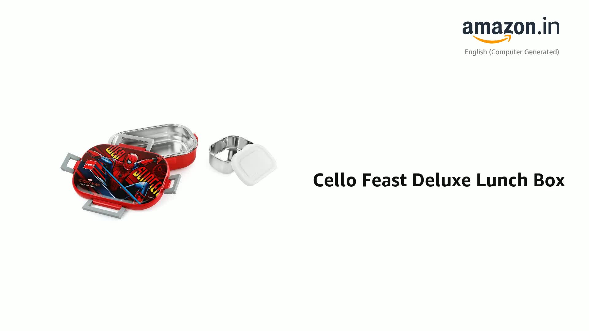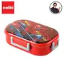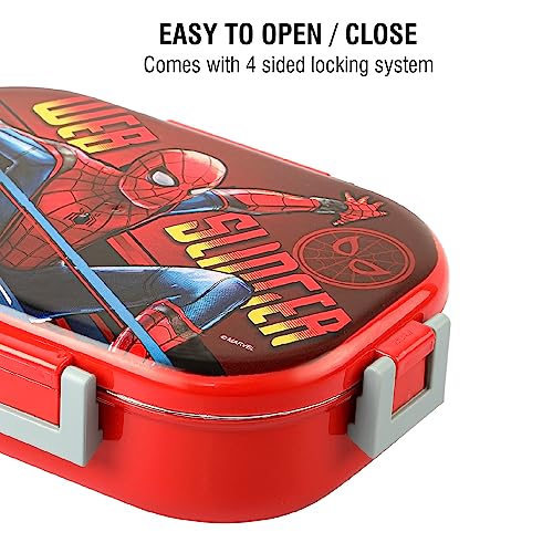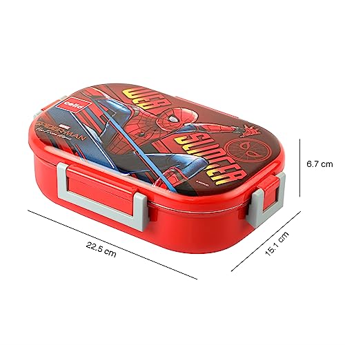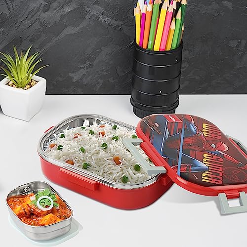 CELLO Feast Deluxe Spider Man Print Insulated Lunch Box, Red | Inner Stainless Steel Mini Box | 2 Container with Locking Lid | Ideal for School & Picnic