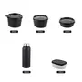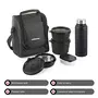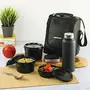 Cello Max Fresh All in One Lunch Box Set of 5 with Fabric Bag | 3 Plastic Containers with Steel Inner 1 Pickle Box and 1 Steel Bottle | Microwave Safe | Full Meal and Easy to Carry Black Large