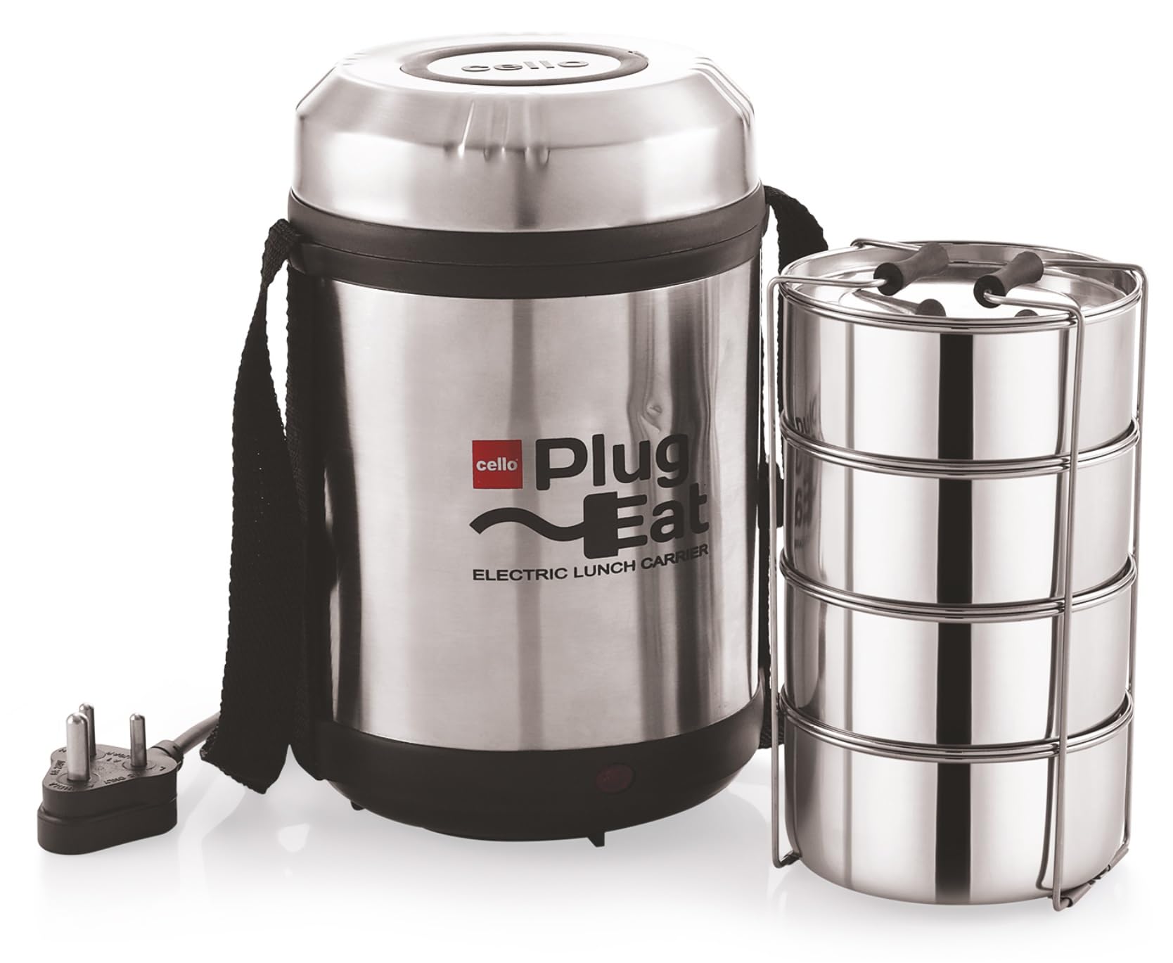 Electro lunch box is an Innovative product from the Cello Plug eat range. Enjoy hot home cooked meal even when you are not at home. It is an electrical appliance that is designed to warm up your food anytime & anywhere. Your food is heated to just the right temperature giving your food that âJust cooked taste & feel. Without cooking/over cooking.
