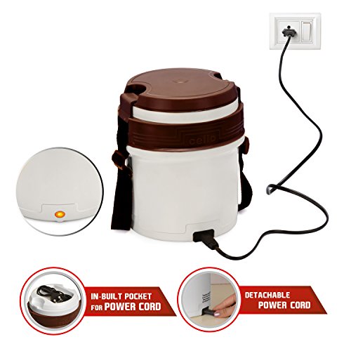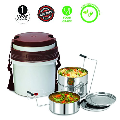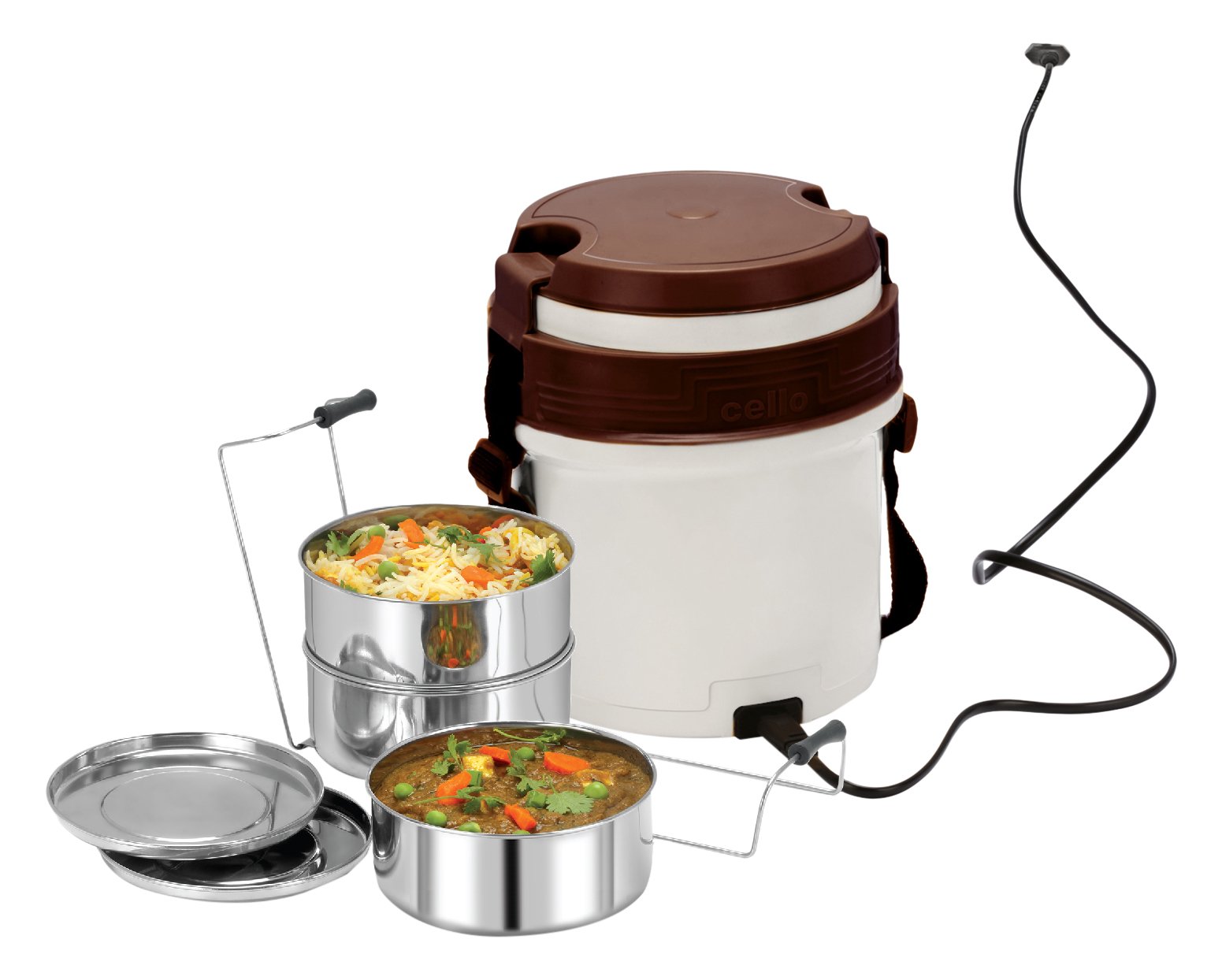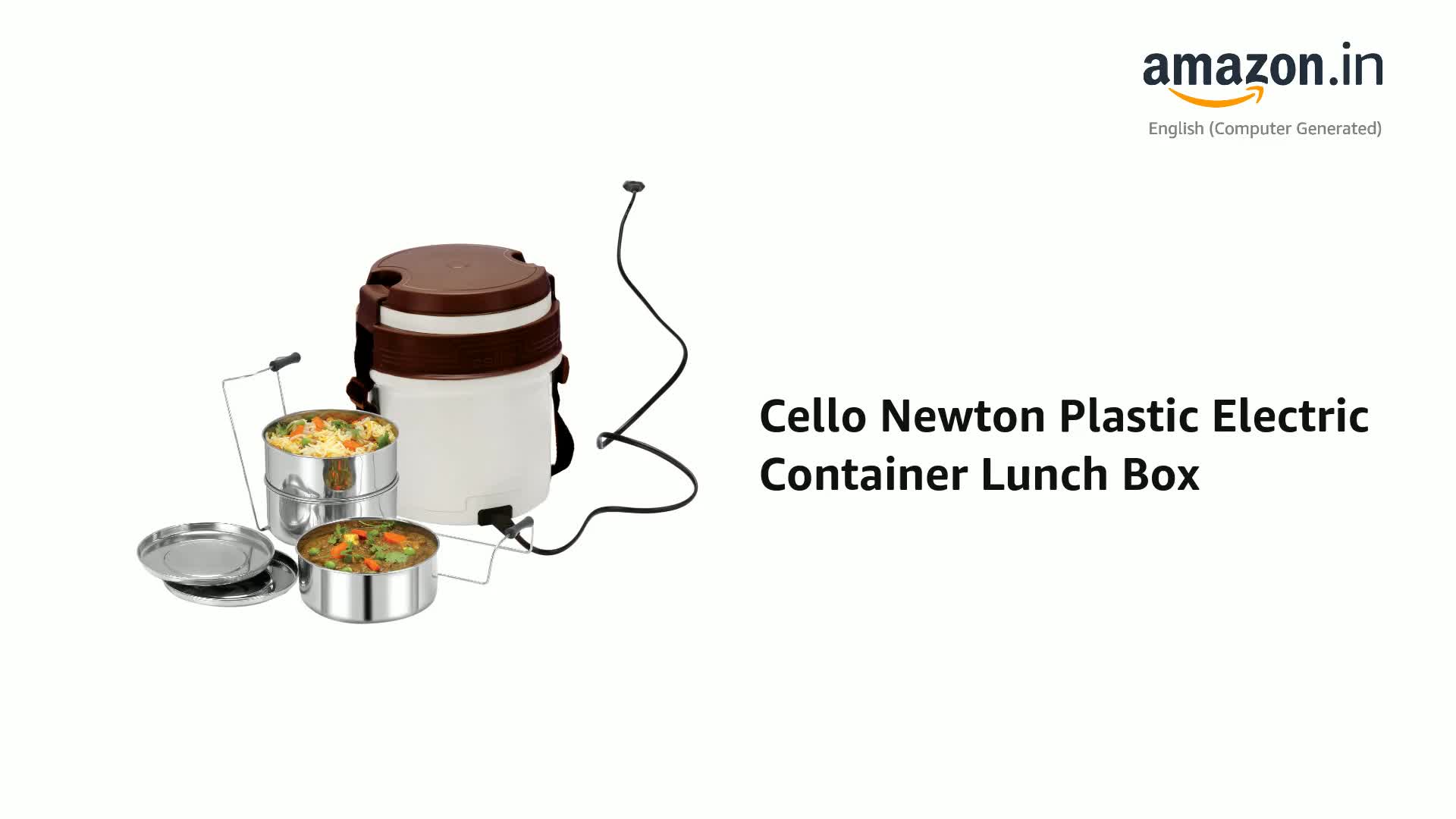 Like eating hot & fresh meal? Are you compromising to eat hot & fresh meal due to lack of means to heat your food?It's time to stop compromising as cello introduces electric lunch box that that serves all your need & allows you to enjoy your meal with convenience without wasting much efforts & time.Newton electric lunch box is an innovative product from the cello plug eat range. Enjoy hot home cooked meal even when you are not at home. Cello newton plug eat is an electrical appliance that is designed to warm up your food anytime & anywhere. Your food is heated to just the right temperature giving your food that "just cooked taste & feel. Without cooking/over cooking. This is achieved by specially designed heater & thermo stat that efficiently heats & controls the food temperature. The newton electric lunch box is made of plastic that includes 3 stainless steel containers that allows you to carry complete meal. It has an intelligent plug-in feature which allows you plug the tiffin at your desk or wherever you are to give you hot food in just 30 minutes. It has a 45 minute auto cut-off feature that keeps your food hot for as long as you want it to be. Cleaning instructions: Do not immerse your newton electric lunch box in water. Before attempting to clean please ensure that the unit is discontinued from the mains supply & the power cord is detached at both ends. For cleaning the plastic outer body & inner cavity wipe gently with a sponge soaked in mild soap solution. Thereafter with a sponge a cloth dipped in clean water remove soap suds. Finally wipe dry with clean soft cloth. The lid & the stainless steel food containers can be washed just like your regular utensils. Use only mild liquid soap solutions for cleaning. This will preserve the appearance & protects its sheen.
