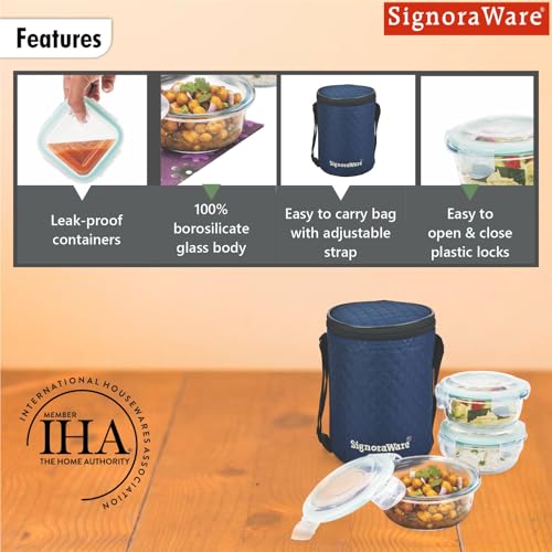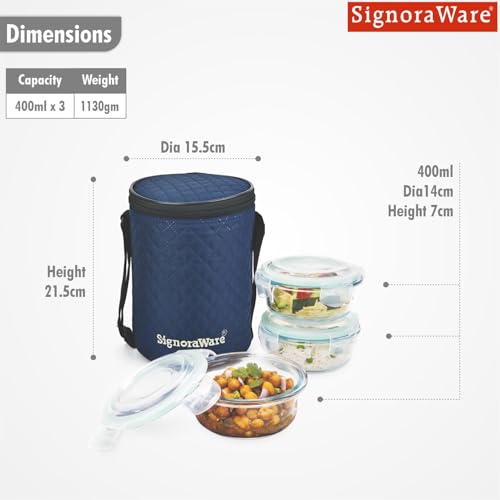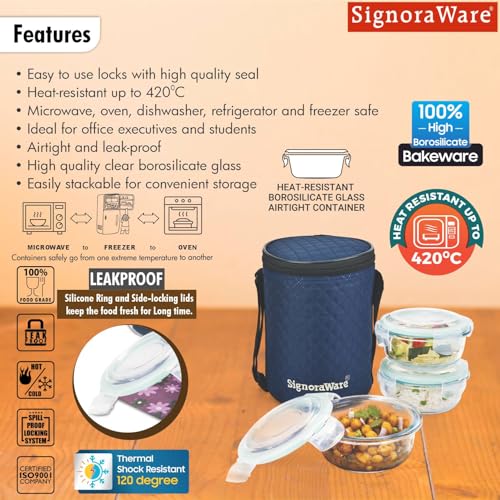 3-Pieces Containers (400ml/16cm) and 1-Piece Lunch Bag