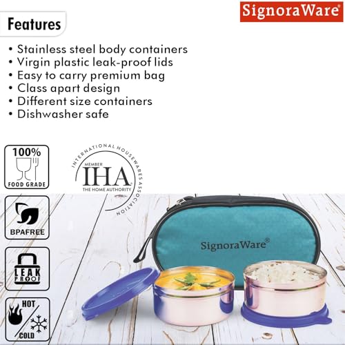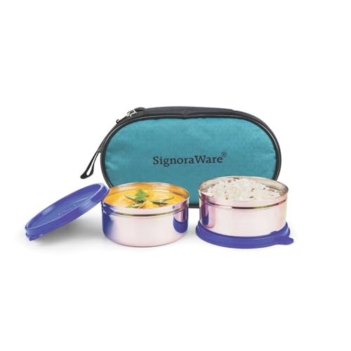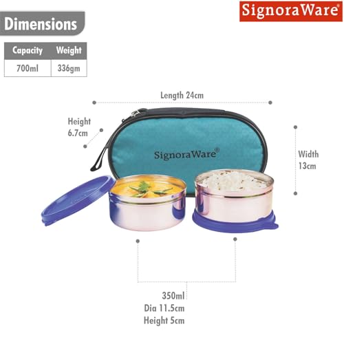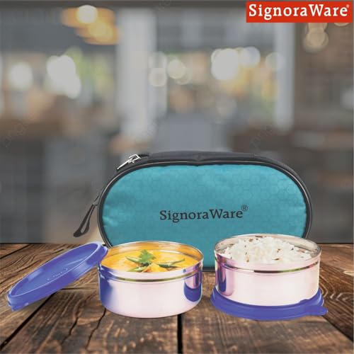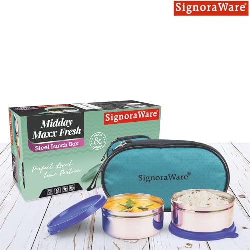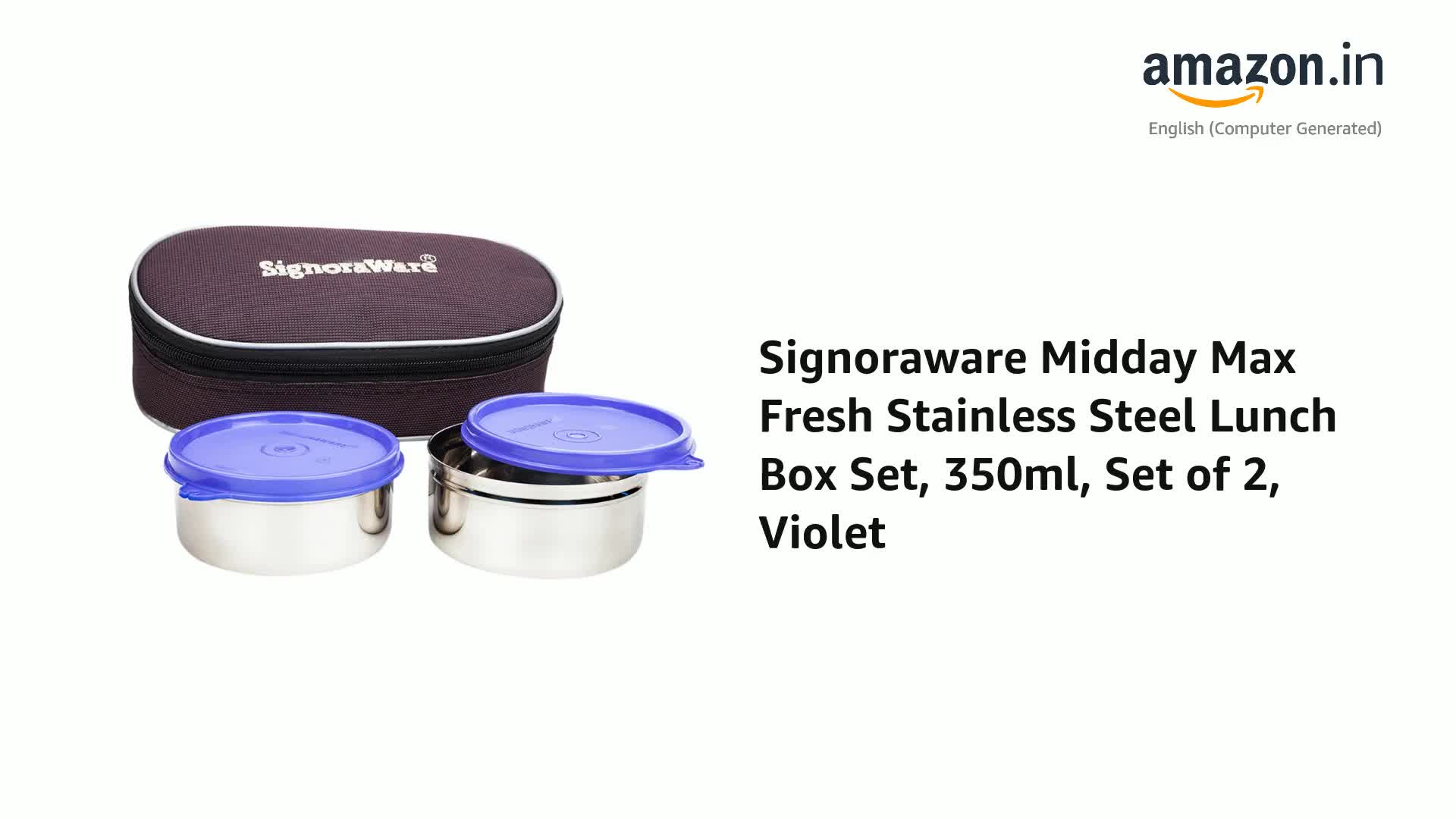 Signora Ware Midday Max Fresh Stainless Steel Lunch Box Set, 350Ml, Set of 2, Violet