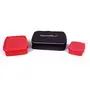 Signora Ware Compact Lunch Box Set Of 2 With Zipered Bag, Bpa Free Plastic, Microwave Safe Food Grade Tiffin Boxes Office School, Leak Proof Air Tight (550Ml+150Ml, Rectangular, Red)
