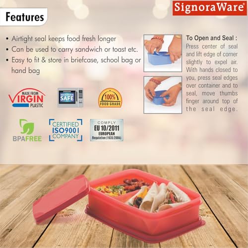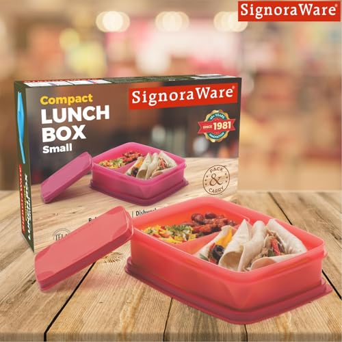 Signoraware Small Compact Plastic Lunch Box 750ml Wine Red