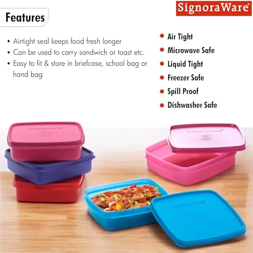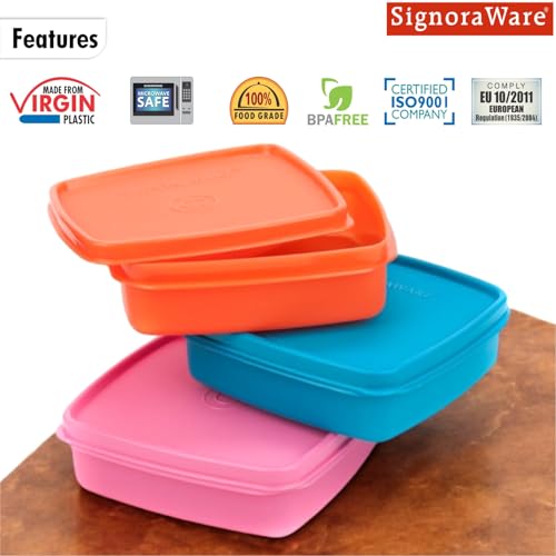 Signoraware Smart N Slim Plastic Lunch Box Set, 350ml, Set of 3, Multicolour