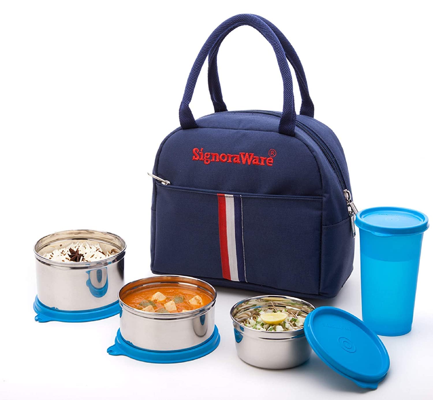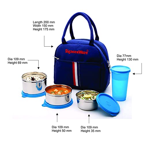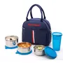Stylish Steel Lunch Box with Tumbler Set of 4 Blue