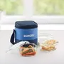 Borosil Prime Borosilicate Glass Lunch Box Set of 2 320 Ml Vertical Microwave Safe office Tiffin Blue Transparent