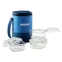 Borosil - Prime Borosilicate Glass Lunch Box Set of 3 320 ml Square Microwave Safe Office Tiffin Blu