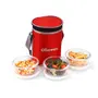 SOPL-OLIVEWARE Pebble Round Glassware Lunch Box Borosilicate Glass Leak Proof & Microwave Safe 3 Containers (400ml) with BPA Free Lids (Red)