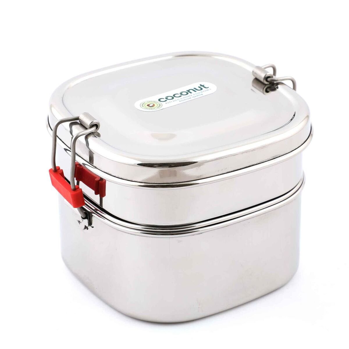 Coconut Stainless Steel Lunch Box, Silver (Double Square Lunch Box Small - S10)